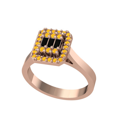 Siyah zirkon ve sitrin 18 ayar rose altın yüzük