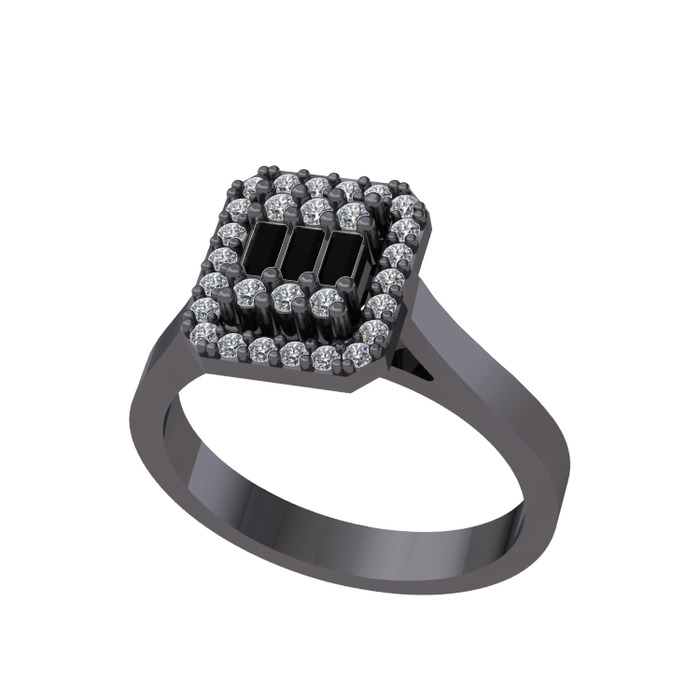 Siyah zirkon ve swarovski 925 ayar siyah rodyum kaplama gümüş yüzük