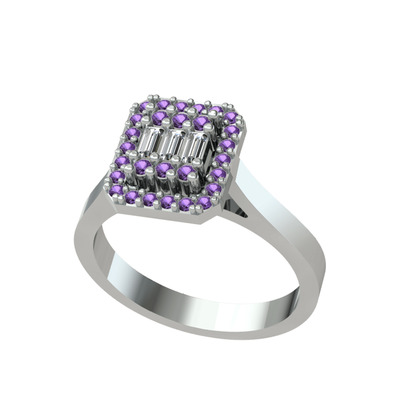 Swarovski ve ametist 18 ayar beyaz altın yüzük