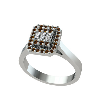 Swarovski ve dumanlı kuvars 8 ayar beyaz altın yüzük