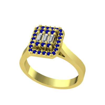 Swarovski ve lab safir 925 ayar altın kaplama gümüş yüzük