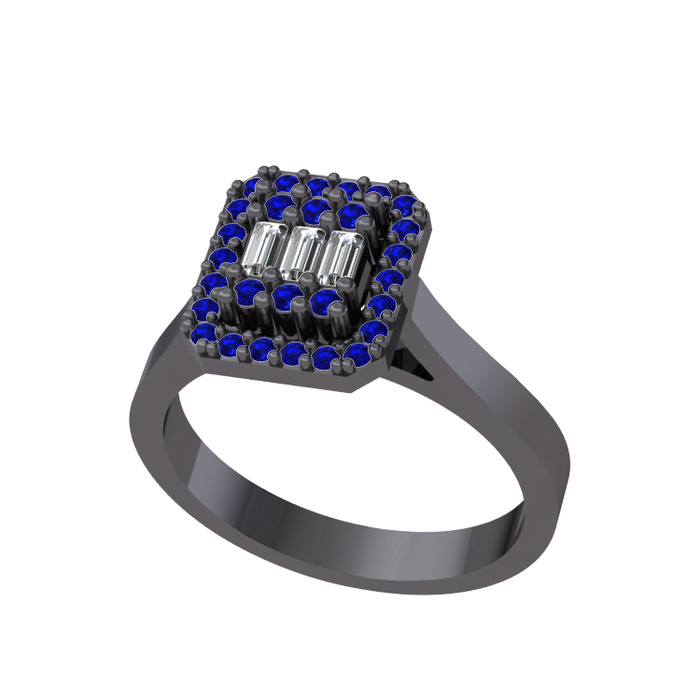 Swarovski ve lab safir 925 ayar siyah rodyum kaplama gümüş yüzük