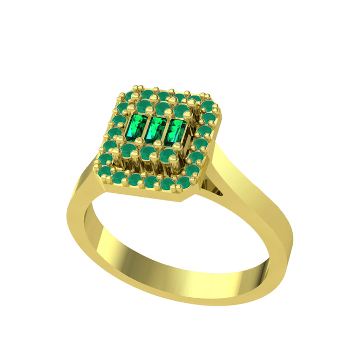 Yeşil kuvars ve kök zümrüt 14 ayar altın yüzük