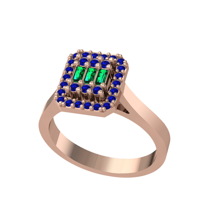 Yeşil kuvars ve lab safir 8 ayar rose altın yüzük