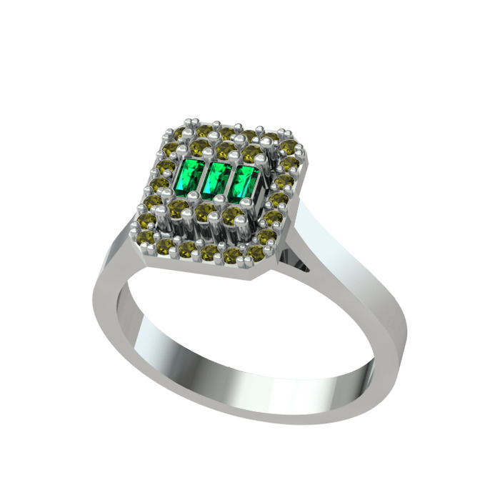 Yeşil kuvars ve peridot 18 ayar beyaz altın yüzük