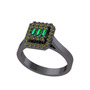 Yeşil kuvars ve peridot 925 ayar siyah rodyum kaplama gümüş yüzük
