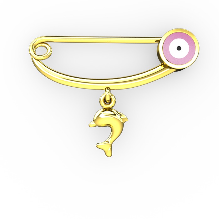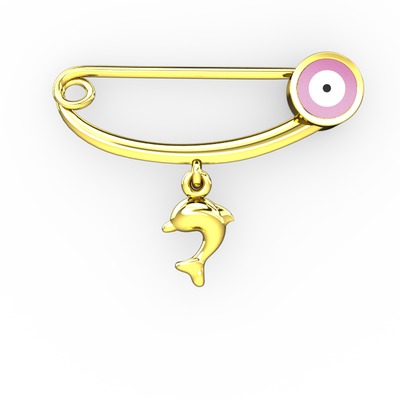 14 ayar altın nazar iğnesi (Pastel pembe mineli)