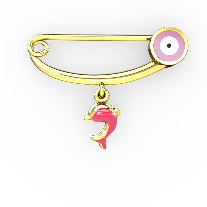 18 ayar altın nazar iğnesi (Pastel pembe mineli)