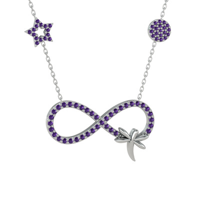 Ametist 8 ayar beyaz altın kolye (40 cm beyaz altın rolo zincir)