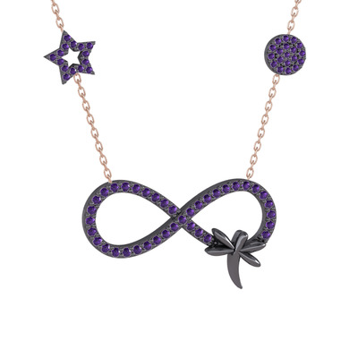 Ametist 925 ayar siyah rodyum kaplama gümüş kolye (40 cm rose altın rolo zincir)