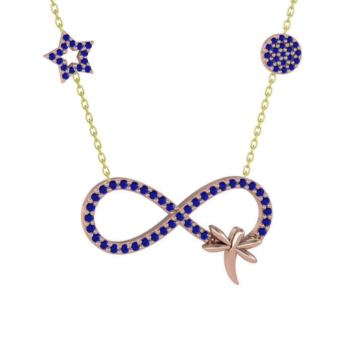 Lab safir 14 ayar rose altın kolye (40 cm altın rolo zincir)
