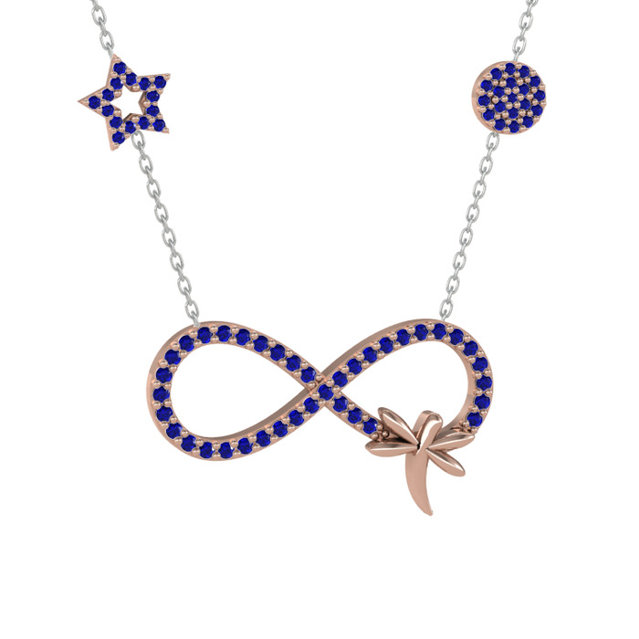 Lab safir 18 ayar rose altın kolye (40 cm beyaz altın rolo zincir)