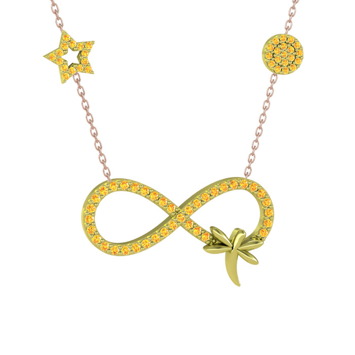 Sitrin 18 ayar altın kolye (40 cm gümüş rolo zincir)