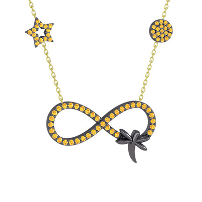 Sitrin 925 ayar siyah rodyum kaplama gümüş kolye (40 cm altın rolo zincir)