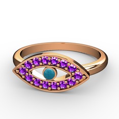 Ametist ve dumanlı kuvars 18 ayar rose altın yüzük