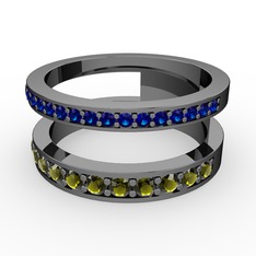Siyah zirkon ve peridot 18 ayar beyaz altın yüzük