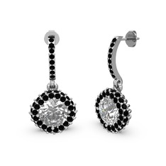 Kök zümrüt ve siyah zirkon 18 ayar beyaz altın küpe