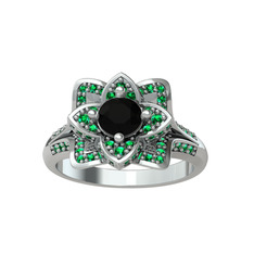 Siyah zirkon ve lab safir 18 ayar beyaz altın yüzük
