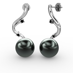 Inci ve siyah zirkon 925 ayar gümüş küpe (Siyah mineli)