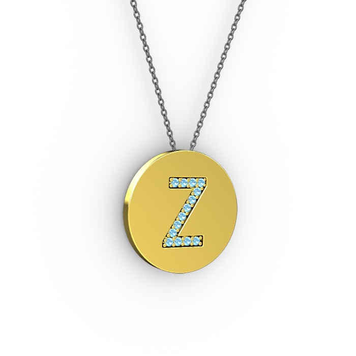Akuamarin 14 ayar altın kolye (40 cm gümüş rolo zincir)