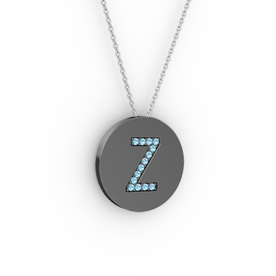 Akuamarin 925 ayar siyah rodyum kaplama gümüş kolye (40 cm beyaz altın rolo zincir)
