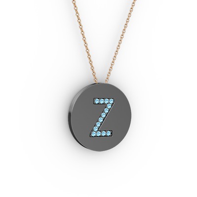 Akuamarin 925 ayar siyah rodyum kaplama gümüş kolye (40 cm gümüş rolo zincir)