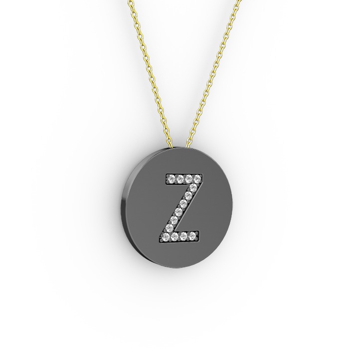 Beyaz zirkon 925 ayar siyah rodyum kaplama gümüş kolye (40 cm altın rolo zincir)