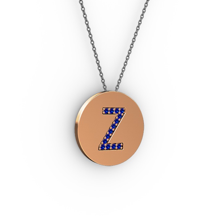 Lab safir 18 ayar rose altın kolye (40 cm gümüş rolo zincir)