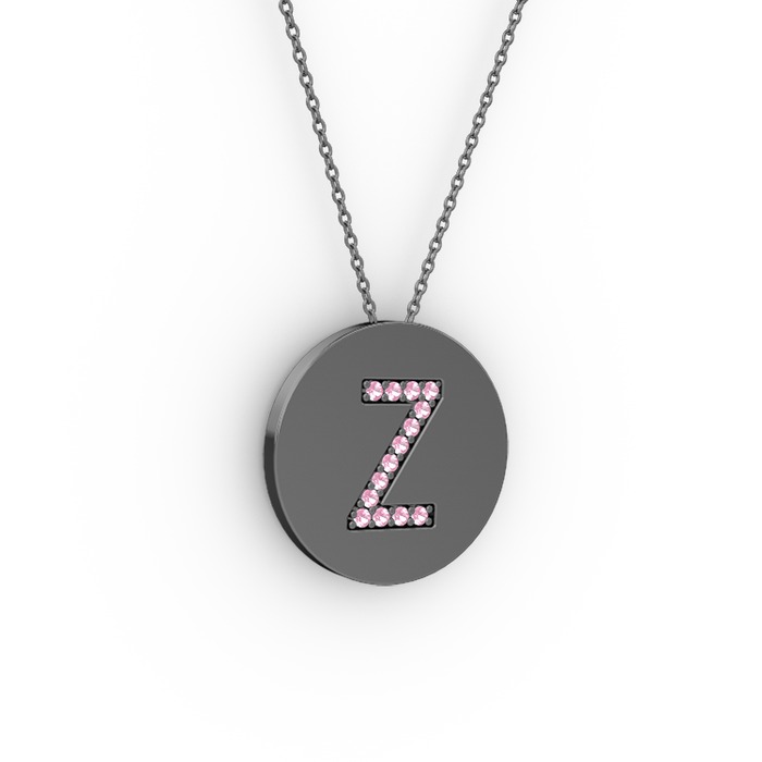 Pembe kuvars 925 ayar siyah rodyum kaplama gümüş kolye (40 cm gümüş rolo zincir)
