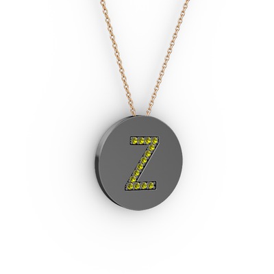 Peridot 925 ayar siyah rodyum kaplama gümüş kolye (40 cm gümüş rolo zincir)