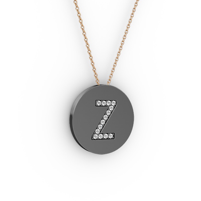 Pırlanta 925 ayar siyah rodyum kaplama gümüş kolye (0.1232 karat, 40 cm rose altın rolo zincir)