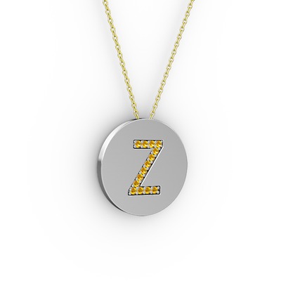 Sitrin 18 ayar beyaz altın kolye (40 cm gümüş rolo zincir)