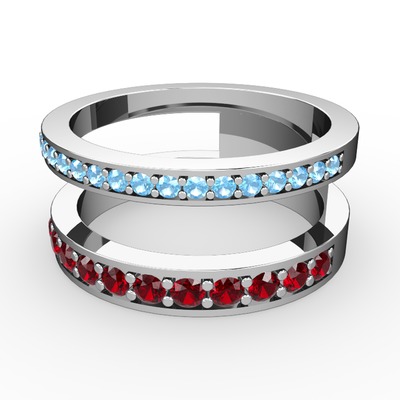 Akuamarin ve garnet 14 ayar beyaz altın yüzük