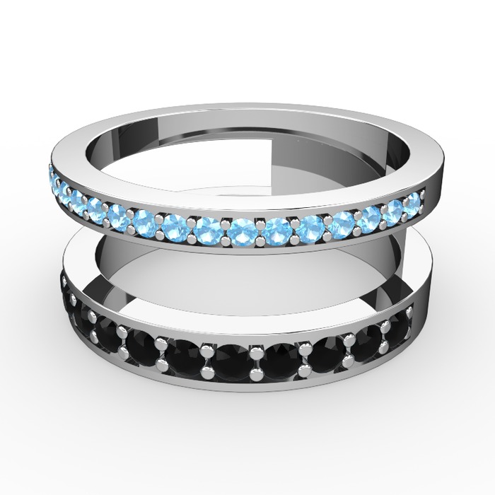 Akuamarin ve siyah zirkon 8 ayar beyaz altın yüzük