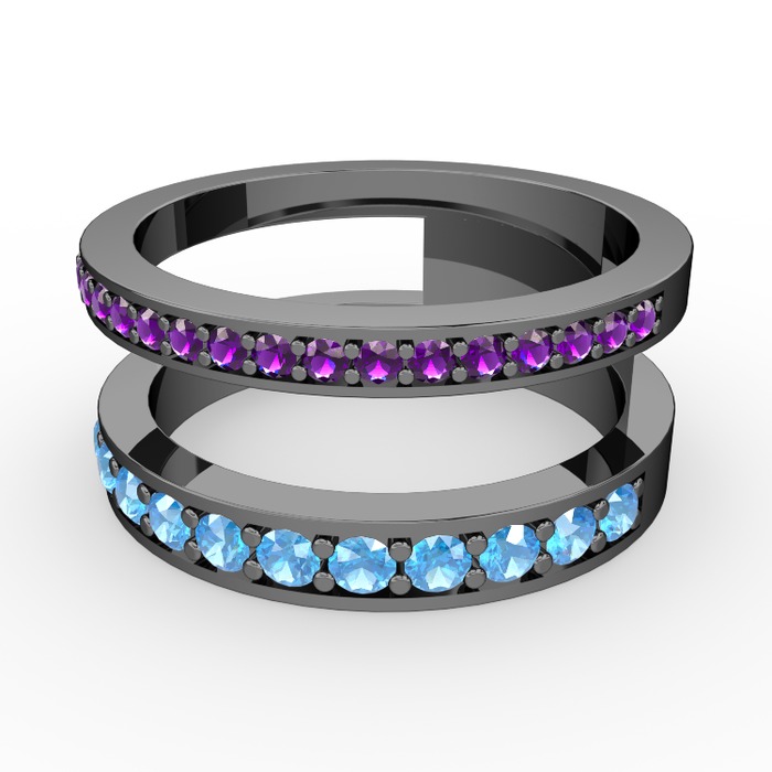 Ametist ve akuamarin 925 ayar siyah rodyum kaplama gümüş yüzük