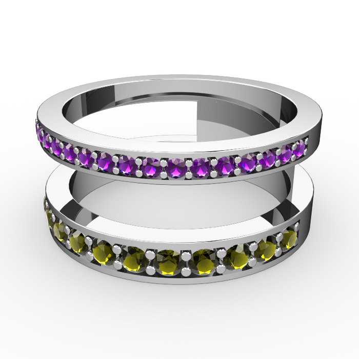 Ametist ve peridot 8 ayar beyaz altın yüzük