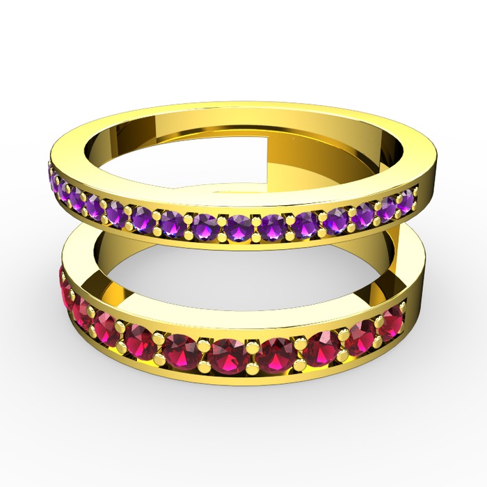 Ametist ve rodolit garnet 18 ayar altın yüzük