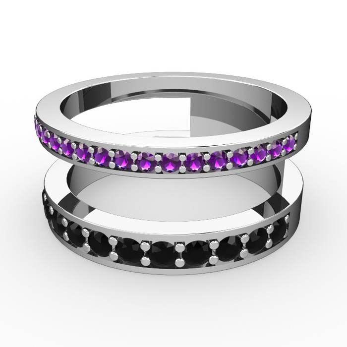Ametist ve siyah zirkon 925 ayar gümüş yüzük