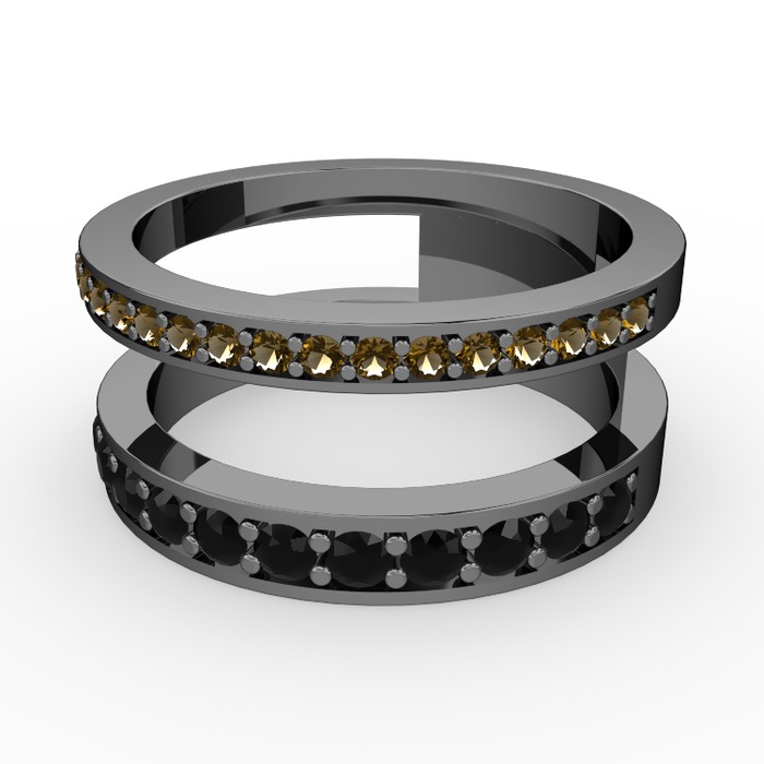 Dumanlı kuvars ve siyah zirkon 925 ayar siyah rodyum kaplama gümüş yüzük