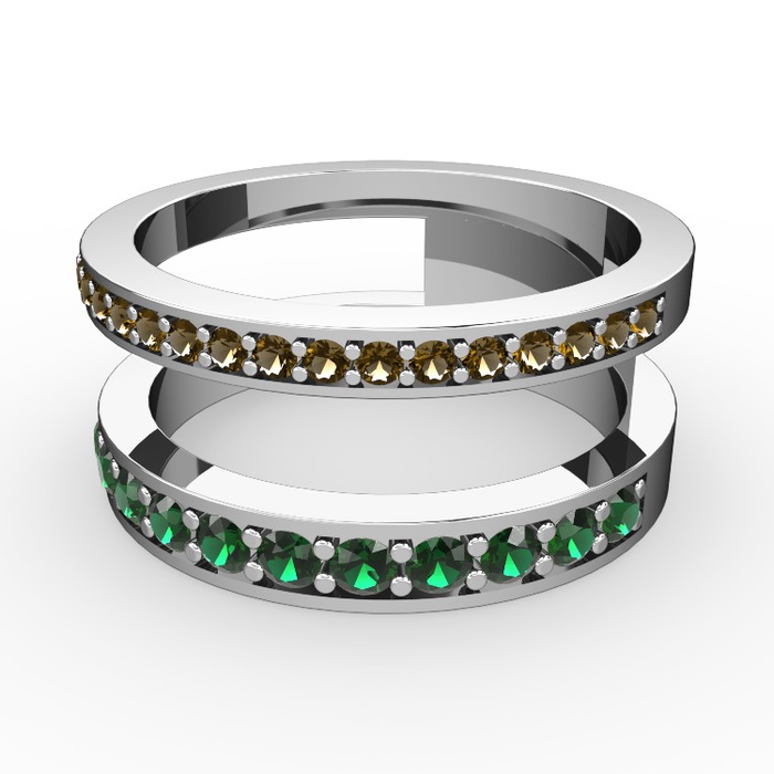 Dumanlı kuvars ve yeşil kuvars 14 ayar beyaz altın yüzük