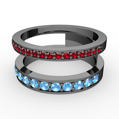 Garnet ve akuamarin 925 ayar siyah rodyum kaplama gümüş yüzük