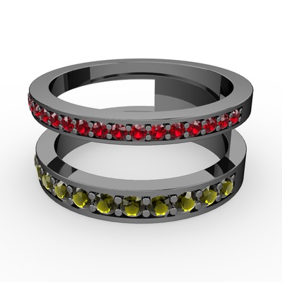 Garnet ve peridot 925 ayar siyah rodyum kaplama gümüş yüzük