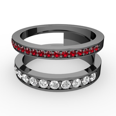 Garnet ve pırlanta 925 ayar siyah rodyum kaplama gümüş yüzük (0.54 karat)