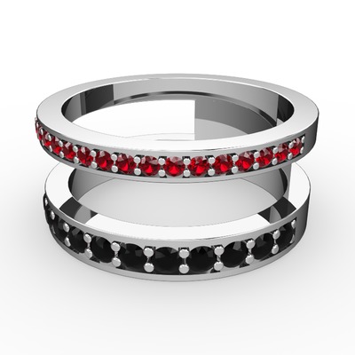 Garnet ve siyah zirkon 18 ayar beyaz altın yüzük