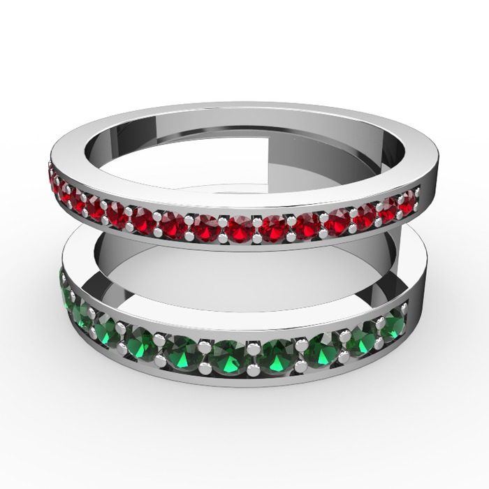 Garnet ve yeşil kuvars 8 ayar beyaz altın yüzük