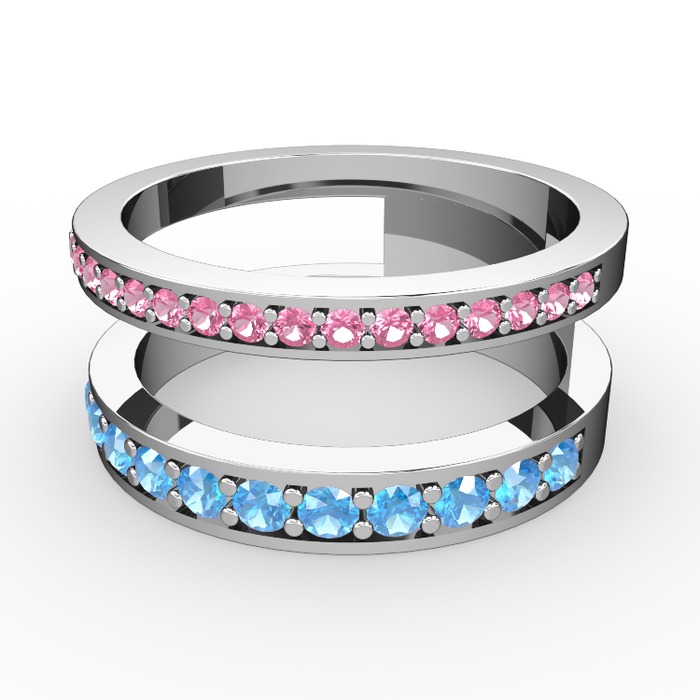 Pembe kuvars ve akuamarin 925 ayar gümüş yüzük