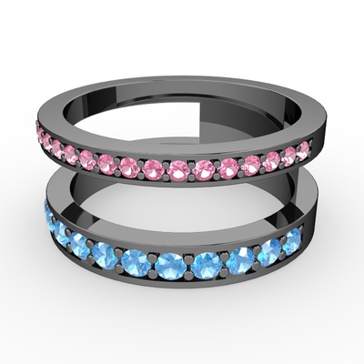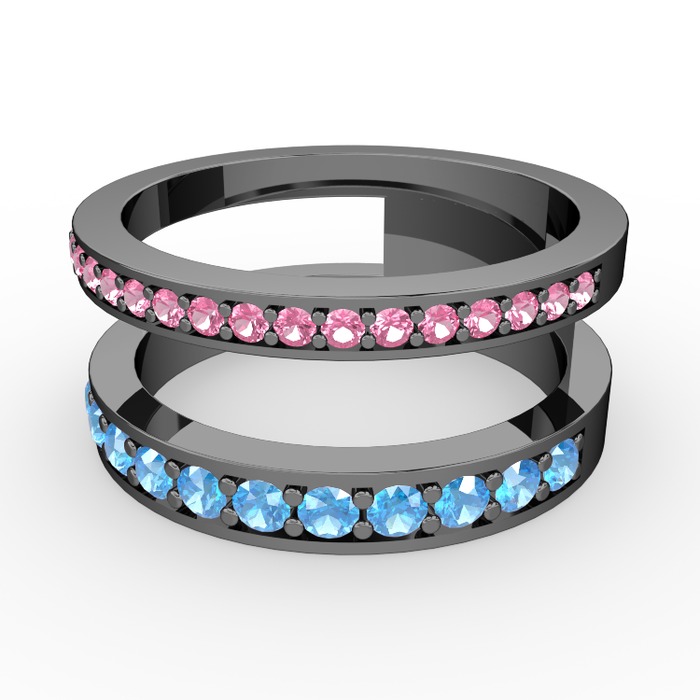 Pembe kuvars ve akuamarin 925 ayar siyah rodyum kaplama gümüş yüzük
