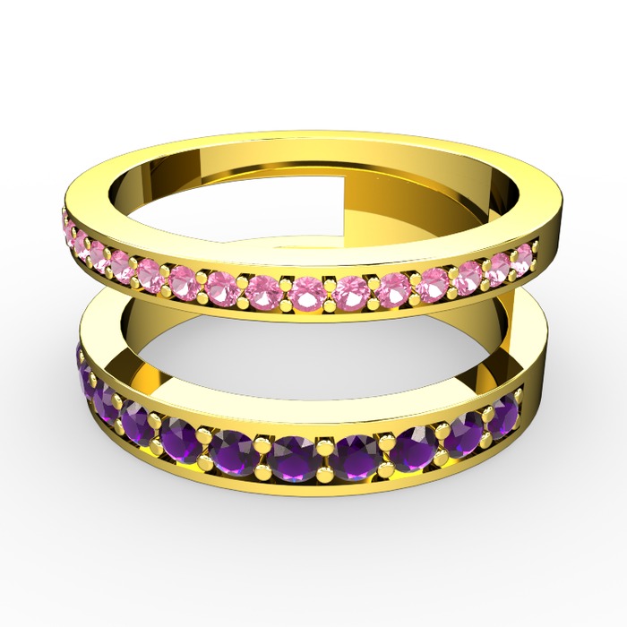 Pembe kuvars ve ametist 18 ayar altın yüzük