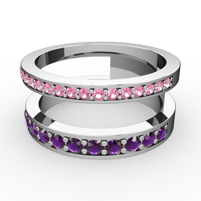 Pembe kuvars ve ametist 925 ayar gümüş yüzük