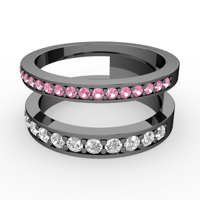 Pembe kuvars ve beyaz zirkon 925 ayar siyah rodyum kaplama gümüş yüzük